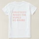 A camiseta para criativos mostra o texto "criatividade faz o mundo girar" na parte de trás da camiseta na tipografia rosa pastel em um fundo branco. Desenvolvido exclusivamente para você pelo Happy Dolphin Studio. Se precisar de ajuda ou produtos correspondentes, entre em contato conosco através do bate-papo da loja!