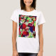com design de arte original de uma pintura original de crimson tropical Cingapura Orchids de cor brilhante por Sacha Grossel Art. Design de uma pintura aquosa de cor vermelha, verde e azul de foco próximo, colorida e brilhante.