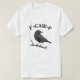 Trata-se de uma ilustração monocromática, profissionalmente trabalhada, que apresenta um corvo pregado num ramo de árvore, renderizado com uma textura distinta de meio tom para evocar uma estética de safra. Posicionado de forma destacada acima do pássaro está o texto ousado e estilizado "F-CAW-F", que oferece uma reviravolta humorística que complementa a vibração gótica e potencialmente assustadora ou a vibração do tema do Dia das Bruxas. A composição geral combina elementos escuros e de estilo de tatuagem vintage com o design retro gráfico.