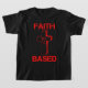 A camiseta deste menino tem uma design que apresenta as palavras "Baseado na Fé" em uma impressão ousada com letras vermelhas e cruz com um coração no centro neste tema de citação bíblica baseado na fé. Esta árvore é confortável, casual e solta, feita a partir de 100% de algodão, com pernas de agulha dupla coçadas e capas de manga para maior durabilidade nossa ajustado camisetas e veste bem em todos.