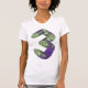 Uma fonte realmente interessante é o que este número três é feito. O número 3 é grande e está na face de uma fonte de tipo cristal. Tem coloração verde e roxa através dela. Esta design de fonte cristalina número 3 parece excelente nesta t-shirt feminina. Perfeito para si mesmo ou como presente