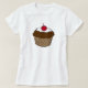 Vestido em um cupcake de chocolate com cobertura de chocolate, coberto com uma cereja, em uma embalagem decorativa bege e marrom, em um fundo marrom de chocolate ao leite
