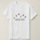 Esta camisa divertida para os padeiros tem texto em um script manuscrito preto "Get Set Assar!". Há seis cupcakes em cores brilhantes de cor rosa, azul e creme, com capas estreladas e espirais de glacé.