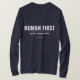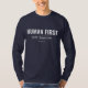 "Make a bold statement with a design that transcends boundaries. Our 'HUMAN FIRST' collection is more than just a style; it’s a commitment to equality, respect, and global unity. Featuring a clean, minimalist layout with high-contrast typography, this design is perfect for those who believe that our shared humanity is the most important bond we have.