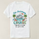 Tropical cruise anniversary design featuring a ship, palm trees, and floral accents. Personalized anniversary cruise shirt with names and date for a romantic celebration.