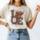 This cute Highland cow Valentine design spreads love with soft pink hearts, floral details, and a sweet bow. It’s perfect for women who adore cozy farm vibes, romantic artwork, and playful Valentine tshirt designs full of charm.