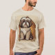 Cute cartoon pup tee with a fluffy brown‑and‑white dog, wooden doghouse, and playful scattered bones — a fun, cheerful pick for any dog lover.