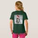 A camiseta desta garota estiva uma imagem de um esquilo alegre que parece estar vestindo um chapéu de Sana. Esta pequena criatura furiosa adoraria vir do frio para desejar a todos um Feliz Natal. A imagem aparece na frente e no verso.
