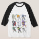 Uma design engraçada com nove personagens populares do Dia das Bruxas — múmia, esqueleto com cabeça de abóbora, zombie, vampiro, fantasma, bruxa, zombie exposta ao cérebro, Frankenstein, e esqueleto — todos fazendo a trendy dança "dab", zombie da Camisa T engraçada, Figurinos do Dia das Bruxas