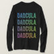 This design showcases the word "Dadcula" in a striking, stacked formation, rendered in a festive, blood-dripping font that exudes spooky charm. The text pops with a rainbow of colors in a gradient effect—creating a bold, eye-catching statement perfect for the holiday season. For dads who shy away from elaborate costumes, this "Dadcula" design is an ideal Halloween solution. It’s a hassle-free, comfortable alternative to fussy costumes, appealing to those who prefer simplicity while still joining the spooky fun.