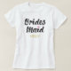 Uma camiseta fofa para suas damas de honra ultra especiais. Deixe-as felizes em ficar ao seu lado durante as cerimônias de casamento com essas camisetas de dama de honra personalizadas exclusivas. Ela apresenta as palavras "Dama de Honra" em um texto elegante estilo manuscrito. Abaixo disso, há um espaço para um nome ou iniciais personalizadas em cor dourada.