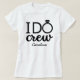 Faça as pessoas incríveis na sua festa de casamento se sentirem especiais e apreciadas com essas camisetas personalizadas de casamento. O design apresenta as palavras "The I do crew" em um estilo de letra elegante e moderno, camiseta feminina minimalista preta e branca. A palavra 'do' apresenta um anel de diamante fofo no lugar da letra 'O' para simbolizar o casamento da noiva e do noivo. Abaixo disso, há um local sutil para o nome do membro da festa de casamento.