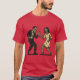 Uma reviravolta divertida e assustadora em um clássico da cultura da pop - dois zumbis tocando a icônica pose de Pulp Fiction. Perfeito para amantes do Halloween, fãs de horror, e qualquer um que desfruta de humor assustador com uma vibração retrô. Impresso em fundo ousado para o máximo impacto, esta camisa é obrigatória para aqueles que gostam de sua moda com um toque de mortos-vivos.