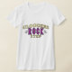 Isto t-shirt de obstrução de balanço diz, de "etapa da ROCHA Cloggers" nas máscaras do ouro e roxo com dois pouca dança, figuras de prata da vara. É um design do jogo de palavras do divertimento para dançarinos da obstrução. A parada pela loja de ClogDance para o clogger maior projeta.