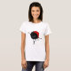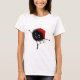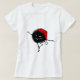 Camisa fêmea vermelha com um inseto preto mau que dança e que canta aos acordos de uma canção do Natal.