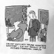 Fogos de artifício e piada de desenho político impressos em uma camiseta. Os primeiros-ministros interrogam-se. O homem diz que decidiu dar uma falsa no fogos de artifício, quando acabou de ver o Período de Perguntas do Primeiro Ministro. Política Britânica. Parlamento Britânico. Ilustração de desenho em preto e branco.
