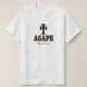 Camiseta amorosa, divina, com cruz e texto preto e dourado. Agape é uma palavra cristã grega antiga que significa o amor de Deus ou Cristo pela humanidade. Um amor sagrado, amor incondicional.