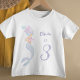 Camiseta de aniversário de sereia debaixo do mar para meninas que completam 3 anos, apresentando uma sereia caprichosa em tons pastel suaves. Uma escolha de roupa fofa e minimalista para festas de aniversário de sereia, fotos de destruição de bolo e momentos de celebração especial. Personalizável com o nome e a idade da aniversariante.