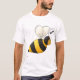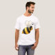 Esta design é uma abelha de pedra. A abelha está voando e tem um sorriso no rosto. Esta design de abelha parece excelente nesta camisa de moente