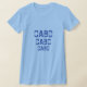 A camiseta feminina aparece com um texto divertido: Cabo. Cor Azul Claro Personalize este item ou comprar como está.