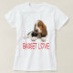 Regra dos Hounds! Esta camiseta canina bonita apresenta um retrato de um cachorro do Basset Hound com as palavras Basset Love em uma fonte de coração bonita.