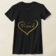 A camiseta feminina tem uma adorável forma cardíaca brilhante de ouro, abençoada no centro. Preto colorido, escolha entre outras opções de cor. Personalizar ou comprar conforme mostrado. Imagem licenciada