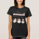 Um design para as damas de honra celebrarem o Halloween e o próximo casamento. Perfeito para uma despedida de solteira. O design incorpora três fantasmas fofos adornados com flores cor-de-rosa. A frase "Equipe Dama de Honra, A Tripulação Assustadora" é exibida orgulhosamente na frente da camiseta. "Dama de Honra" é impresso em um texto cor-de-rosa pontilhado feminino e fofo.