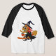 Camiseta Básica, Mangas Raglan 3/4, Branco/Preto, Adulto M