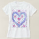 Uma bonito pulseira branca de esparguete decorada com corações e rosas em rosa, violeta e azul, de um design pintado à mão por Judy Adamson.