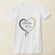 Um coração preto e dourado com uma garrafa de champanhe e um copo com as palavras "Noiva" no centro do coração. Camiseta da noiva para a festa de despedida de solteira.