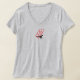 Camisa V-Neck da ginástica com corações vermelhos e ginasta, dupla face.