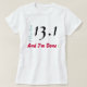 Nossa divertida Camiseta Meia Maratona das Mulheres de Longa Folga é uma ideia divertida de presente para uma amiga que começou a correr. Design apresenta texto em preto e vermelho claro: Eu posso correr 13.1 e estou pronto!