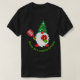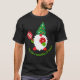 Camisetas unísexas bonitas de piquete de Natal com anão de Natal feliz vestindo chapéu de árvore de Natal e segurando um remo de piquete. Texto personalizável