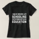 Esta camiseta preta apresenta a famosa citação de Mark Twain "Nunca Deixei que a Escolaridade Interferisse na Minha Educação" em tipografia branca e negrito. Uma declaração atemporal para pensadores, leitores, professores e amantes da sabedoria literária espirituosa.