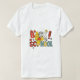 Um design de volta colorido e lúdico, com letras arrojadas e vibrantes decoradas com padrões divertidos, maçãs, flores e uma ilustração do arco de lápis