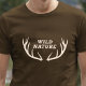 Uma camiseta com traficantes de veados ilustra e um texto totalmente personalizável: "Natureza Selvagem" no estilo rústico. Pode ser usado como presente para um caçador ou para um amante da natureza e do exterior!