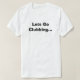 Uma piada do divertimento em um t-shirt do partido onde a maioria de pessoas lhe dêem uns cinco altos quando vêem a parte dianteira, e está deixada sem-palavras quando vêem a parte traseira.
