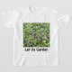 A alface que misturada as folhas crescem com as palavras "deixou-nos jardinar" lembrando nos crescer um jardim.