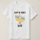 O t-shirt que caracteriza um menorah de Hanukkah e "deixou-nos obter o Lit."