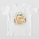 Deixe a fé e a alegria brilharem brilhantemente com esta inspiradora t-shirt da rapariga "Let Your Light Shine", que apresenta o verso Bíblia Matthew 5:16. Projetada com belas letras de mão, raios radiantes de ouro e flores decorativas, esta camisa é um belo lembrete para compartilhar a luz de Deus com o mundo.