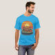 Esta design de camiseta apresenta uma ilustração atraente e visualmente atraente de uma sanduíche grelhada gourmet, colocada contra um pano de fundo vibrante do pôr do sol. O sanduíche, retratado com detalhes meticulosos, apresenta pão perfeitamente grelhado com marcas de salto visíveis, com legumes frescos e fatias suculentas de carne. É colocada sobre uma placa azul adornada com um conjunto colorido de legumes frescos, incluindo tomate, alface e cenouras fatiadas, acrescentando ao banquete visual geral. O fundo destaca um pôr do sol espantoso, com o sol a ficar baixo no horizonte e a lançar matizes quentes de laranja, amarelo e vermelho através do céu, criando um efeito gradiente. O design capta a essência de uma refeição deliciosa apreciada numa noite pitoresca, fazer-a perfeita para os entusiastas comidas e para aqueles que apreciam representações artísticas de delitos culinários.
