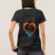 Abstrato de design claro e escuro de uma dançarina em forma cardíaca. Na frente, o design do coração é colocado sobre o seu coração. No verso está uma versão maior com uma inscrição que diz "Dentro bate o coração de uma dançarina".