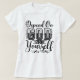 Esta t-shirt apresenta um gráfico negro decorativo que diz "Depende de DEUS Não Você Mesmo". A palavra "DEUS" é concebida de forma única com contornos pontilhados e pequenas marcações semelhantes a réguas.