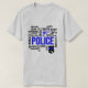 Esta camiseta tem a palavra Polícia em azul junto com múltiplas palavras que descrevem o que é e faz um policial. Estes seriam excelentes para um partido de reforma policial ou para alguém que se formasse na academia de polícia ou em qualquer atividade policial.