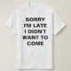 CAMISETA DESCULPE POR ESTAR ATRASADO, NÃO QUERIA VIR