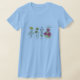 Uma t-shirt decorada com um estudo de flores silvestres, que inclui papoilas, calendários, campainhas e petúnias desenhadas em caneta, tinta e aquarela.
