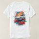 Um desenho simples e elegante de um carro. O carro tem uma design elegante e moderna, e o desenho mostra seus detalhes e características. Esta design de camiseta é ideal para quem gosta de carros e esboços.