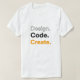 Elevate your creative identity with this sleek and stylish "Design. Code. Create." professional graphic. Featuring a beautifully modern layout with a unique grid-textured 'Design' font and a vibrant, eye-catching orange 'Create' accent, this design perfectly captures the workflow of digital innovators. It’s an elegant and sophisticated choice for UI/UX designers, front-end developers, and tech entrepreneurs who value clean, high-end aesthetics.