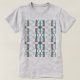 Uma combinação abstrato de formas e linhas em azul-turquesa, lacre e ferrugem cria um padrão de azulejo vertical com linhas de zigue-zague em linhas, reminiscente dos estilos de arte mediterrânico e Nativo Americano/Sudoeste. Foto aqui em uma camiseta leve de cinza de aço, com outros estilos e cores disponíveis, o design projeta uma qualidade sutilmente colorida, pacífica e artística para uma adição versátil e polida ao seu visto casual e cotidiano (seja em casa, socializando com amigos, praticando esportes ou correndo sobre a cidade). A design de camisa como "arte 'vestível'" também expressa um sentido de seu estilo individualizado, contribuindo para o sentimento de ser "unido" e criativo em suas escolhas pessoais de guarda-roupa.
