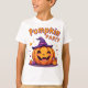 Celebre o Halloween em estilo com esta adorável t-shirt do "Pumpkin Party"! Apresentando uma abóbora animada de desenho animado com bochechas rosadas, um rosto risonho largo, e um dente perdido, vestindo um chapéu de bruxa roxo. De um lado, senta-se uma pequena abóbora e um pirulito roxo, enquanto o outro lado apresenta um balde de jack-o-lanterno cheio de doces. Cercado por pontos roxos e formas laranja de starburst, esta design captura o divertido e festivo espírito do Dia das Bruxas. Perfeito para festas, truques ou tratamentos, ou dias de outono confortáveis — um presente sazonal fofo para crianças e adultos!